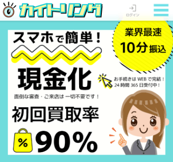 初回90%の換金率で即日現金化!